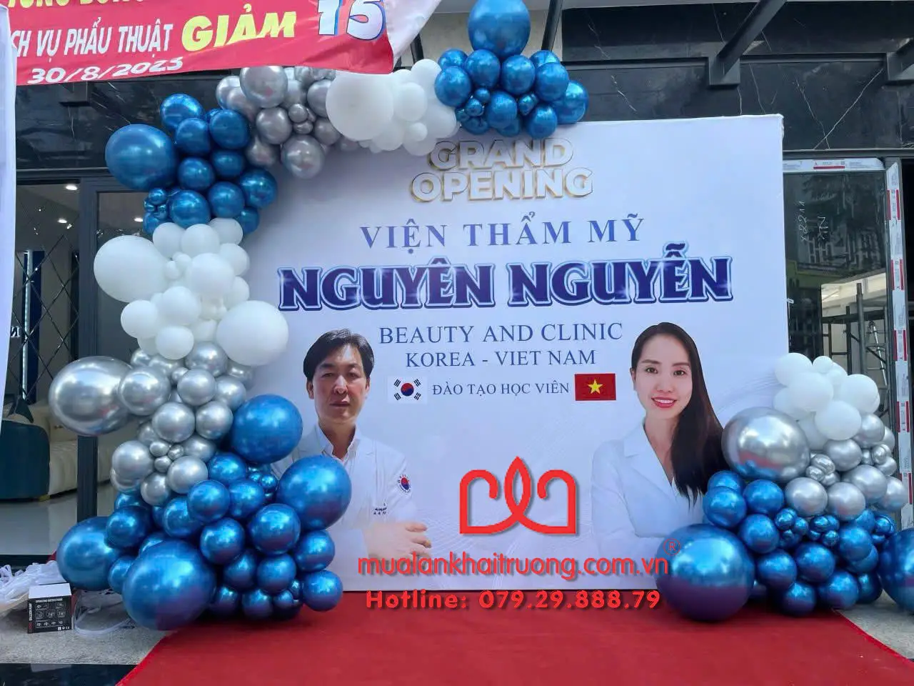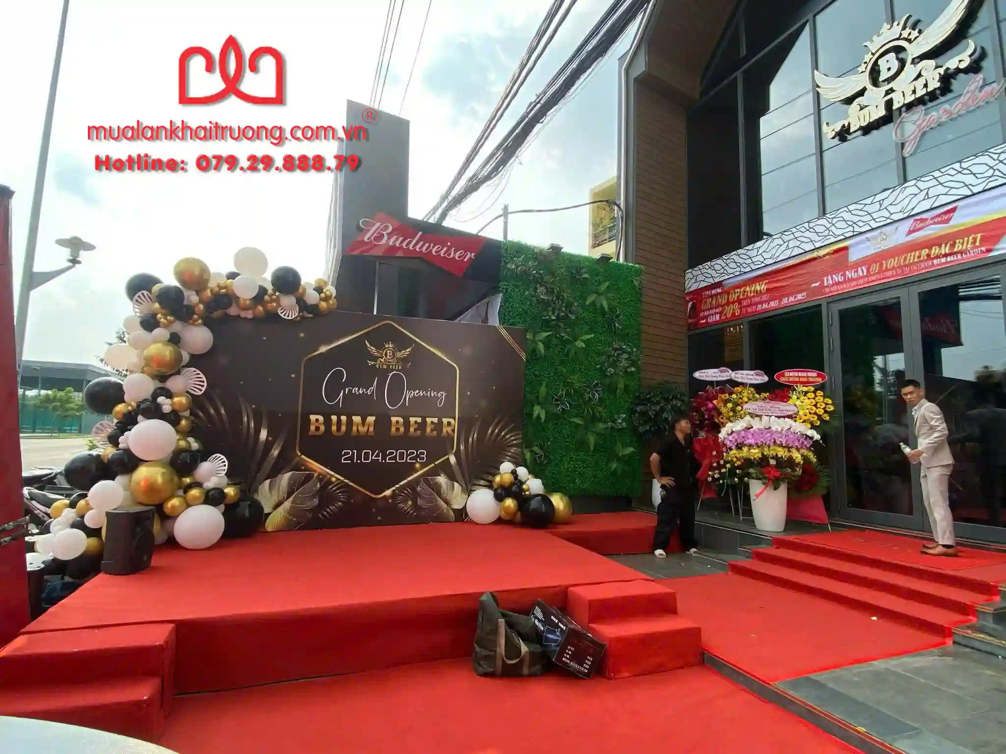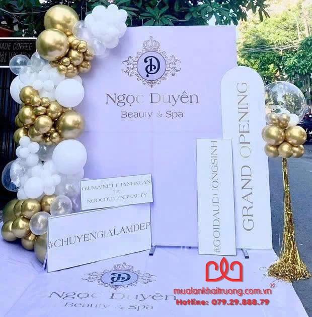 - Trang trí backdrop được thiết kế theo yêu cầu, kèm line bong bóng đồng bộ màu sắc thương hiệu